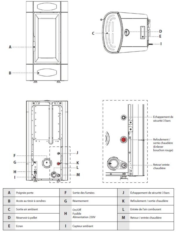 Ce poêle est équipé des dispositifs de sécurité les plus avancés, incluant une soupape de sécurité 3 bar, un vase d’expansion, des sécurités thermiques et de pression, et un réservoir hermétique. Vous pouvez chauffer votre maison en toute sérénité.
